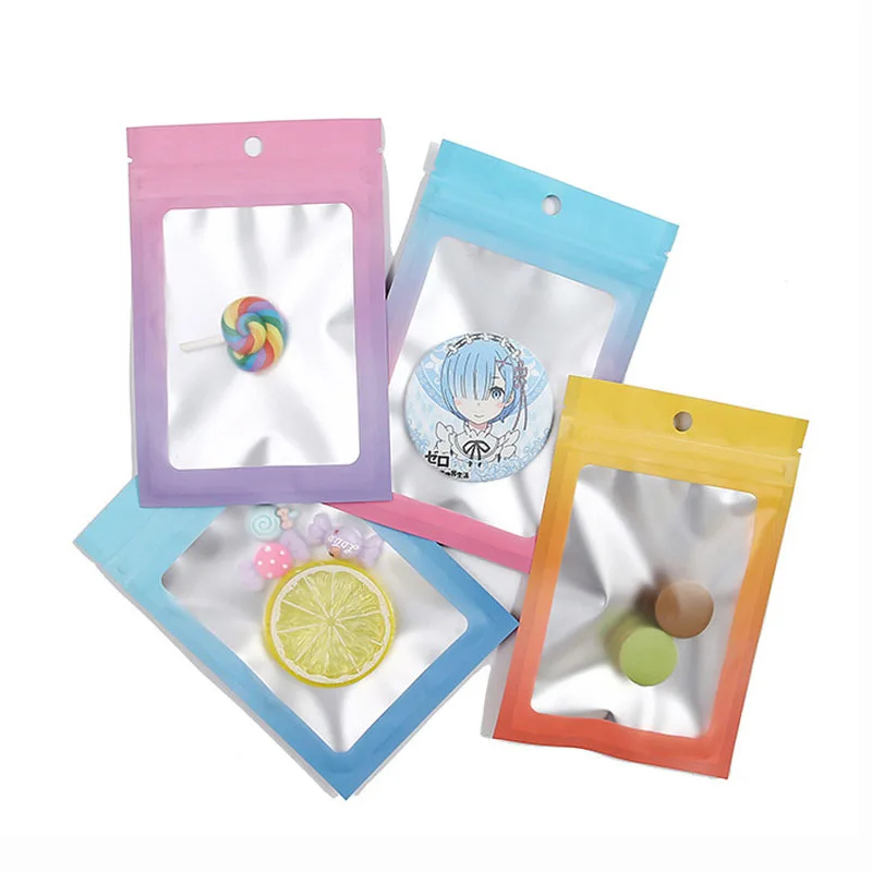 Matte Colorful Moisture Proof 3 Side Seal Zipper Pouch Mylar Bags with Frost Window for Ornaments Fashion Accessories Packaging