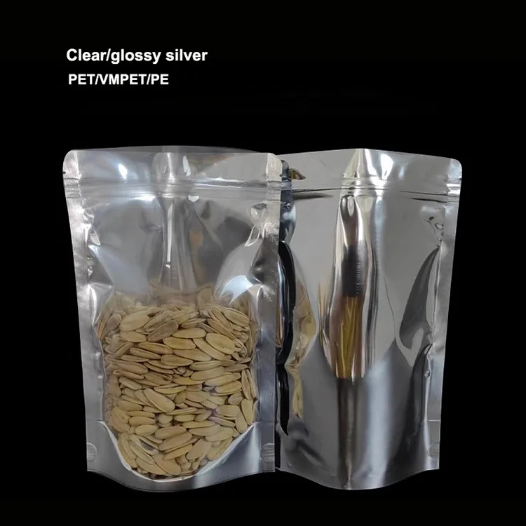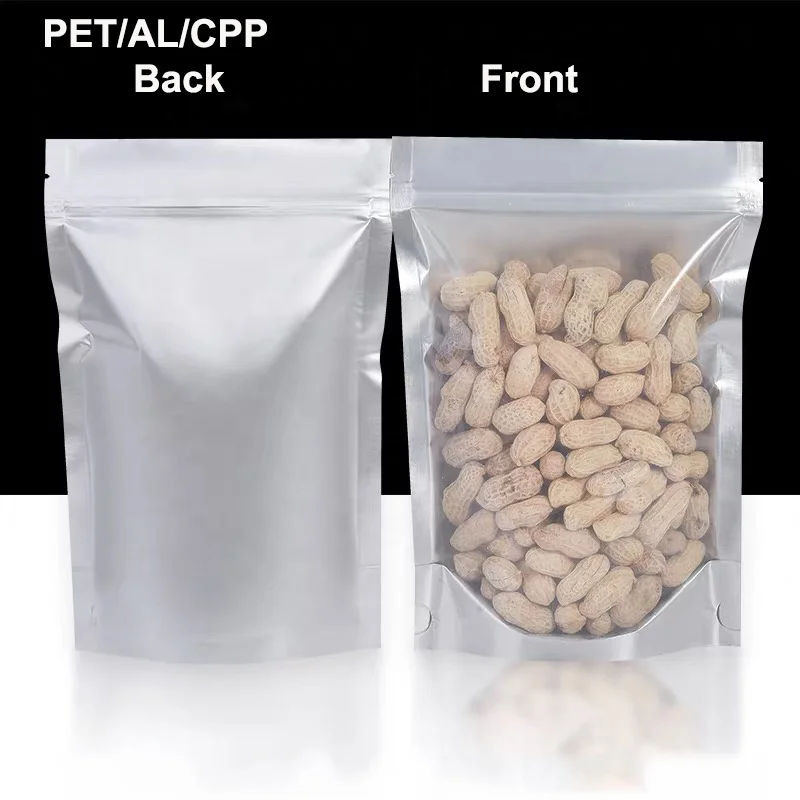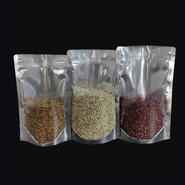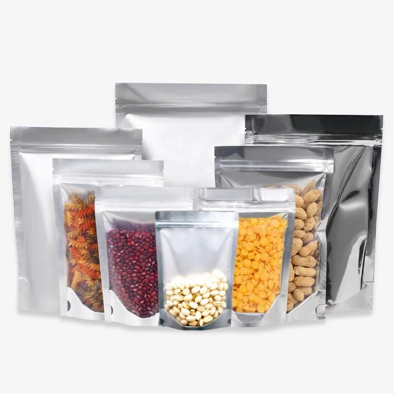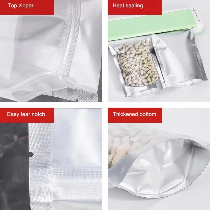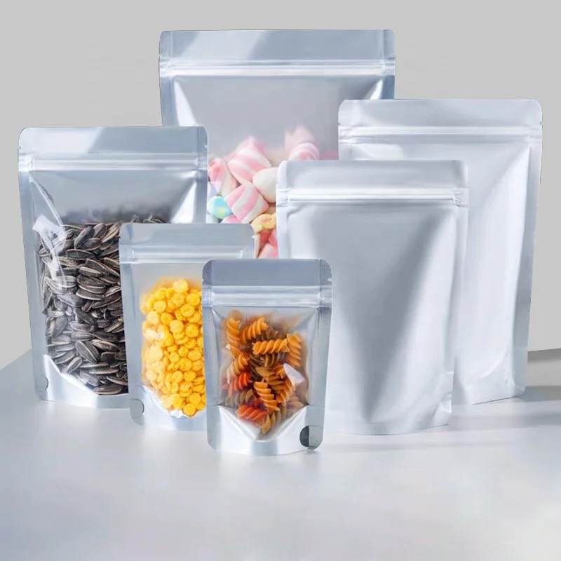 Matte Plastic Stand up Pouch Zipper Mylar Bags Clear Front Aluminum Foil Back Reusable Food Storage Bags for Spice Chili Milk