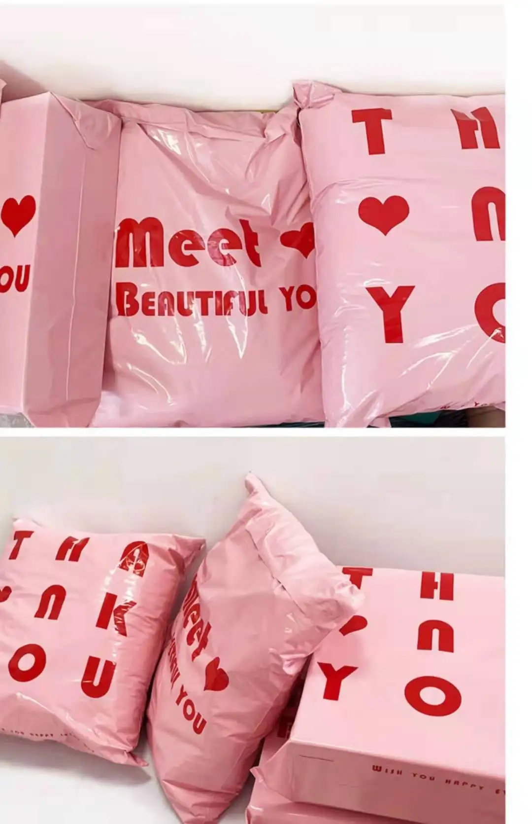 Opaque PE Plastic Express Storage Bags Custom Logo Pink Mailing Bags Self Adhesive Seal Medicated Starburst