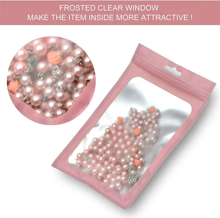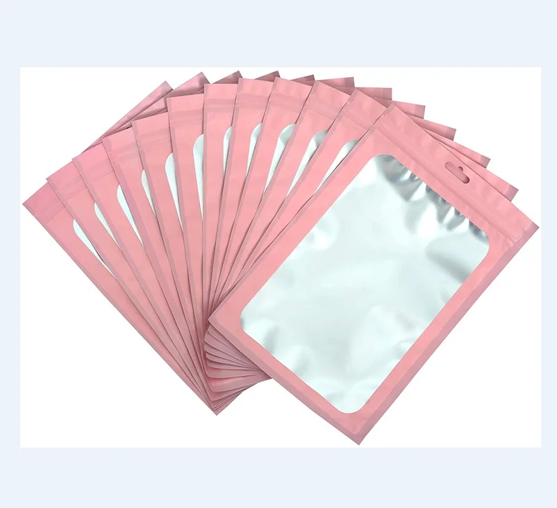 Pink Color Ziplock 3 Side Seal Pouch Aluminum Foil Resealable Zipper Jewelry Food Gift Packaging Plastic Bags