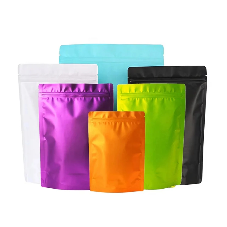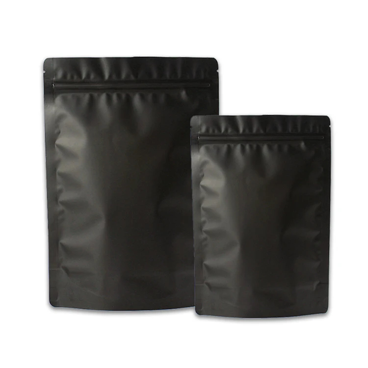 Recyclable Custom Logo Resealable Aluminum Foil Mylar Ziplock Bags Matte Black Colored Stand up Pouch