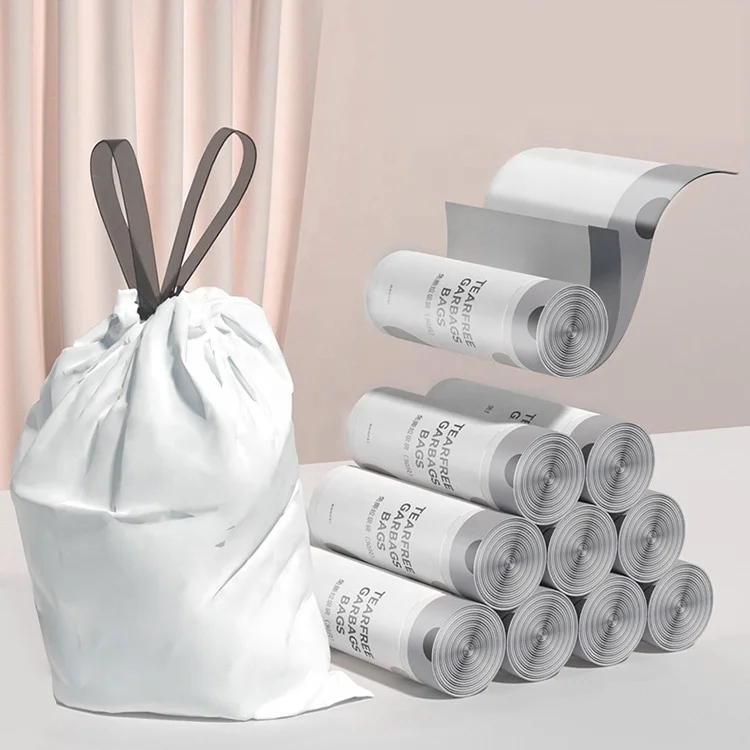 Recycling Tear-free Household Kitchen Trash Bags Drawstring Garbage Bags for Trash Can Garbage Bin Recyclable Trash Bag with Box