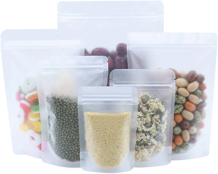 Resealable Frosted Plastic Ziplock Mylar Bags Tea Dried Fruit Nuts Marshmallow Jelly Bean Gummy Packaging Stand up Zipper Pouch