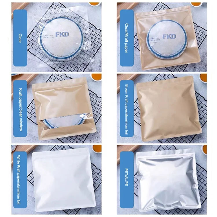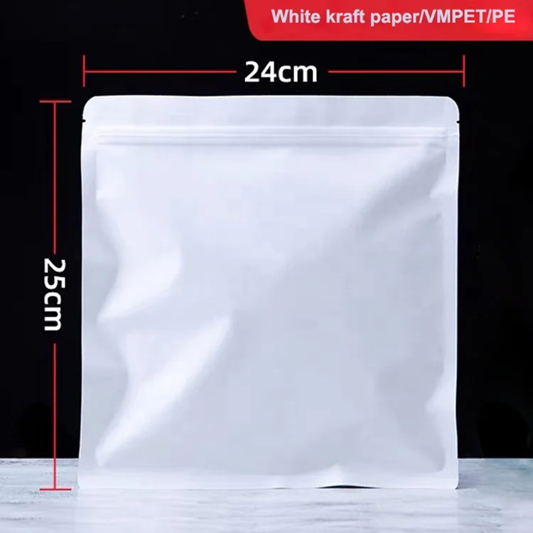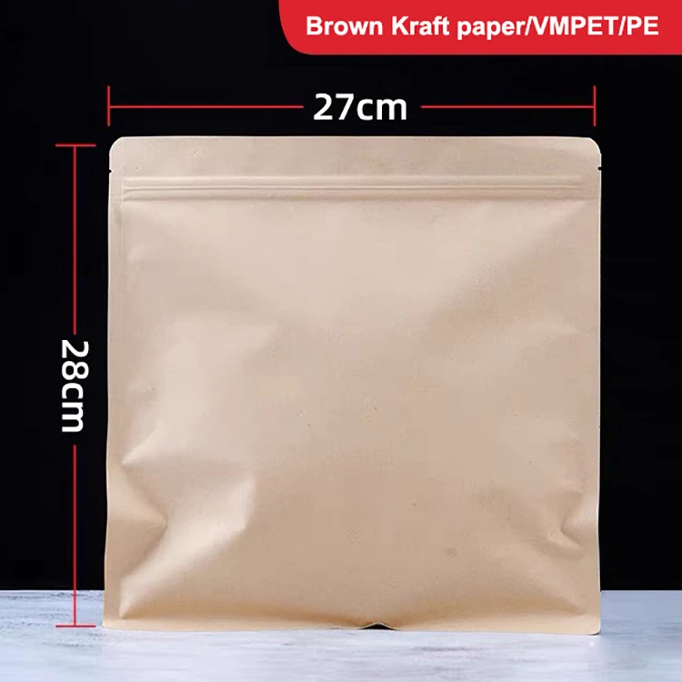 Reusable Tea Cake Storage Paper Bags 3 Side Seal Bag Zip Lock Kraft Paper Aluminum Foil Moisture-proof Self-Sealing Pouch