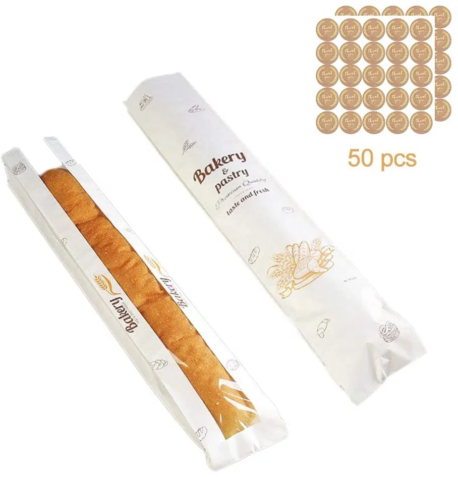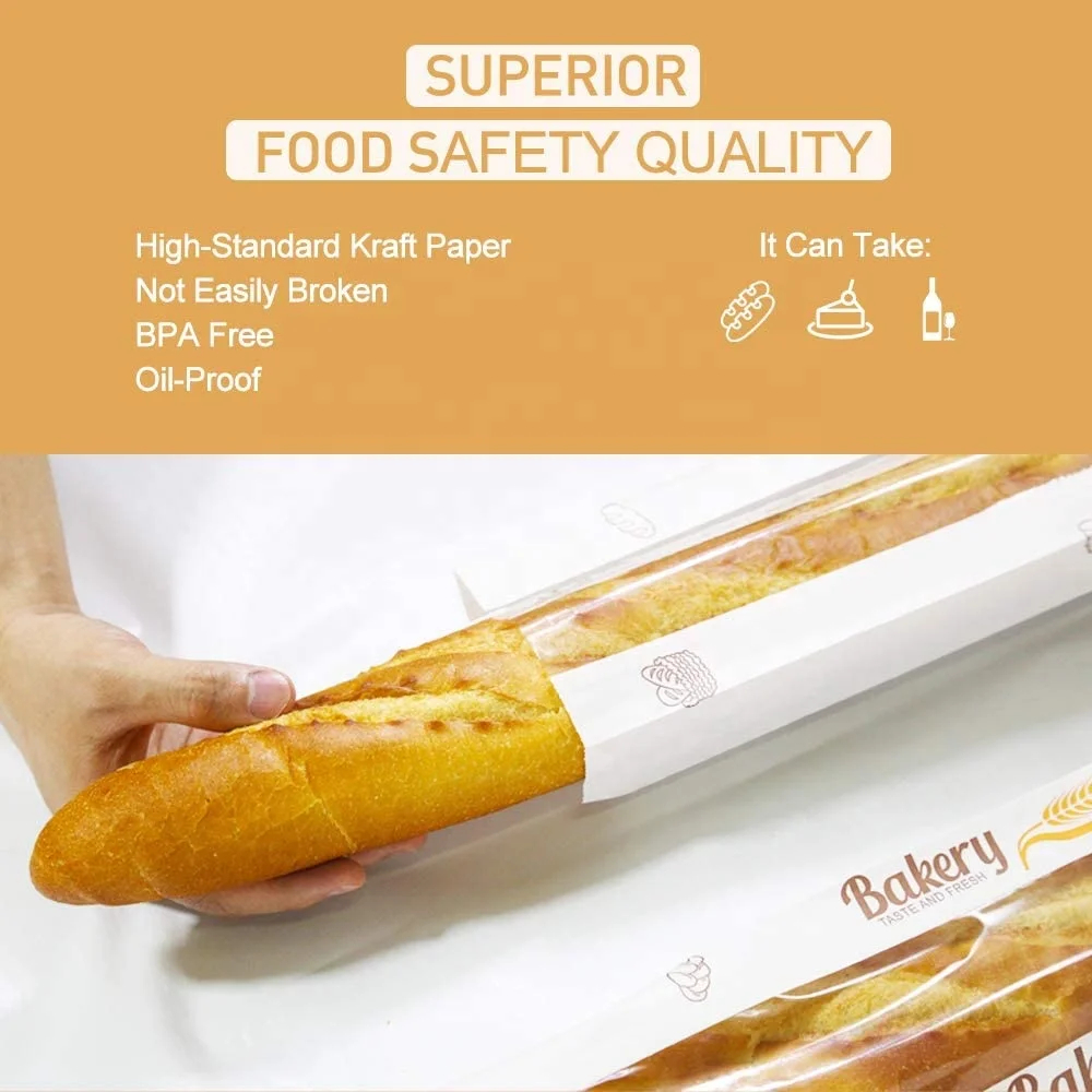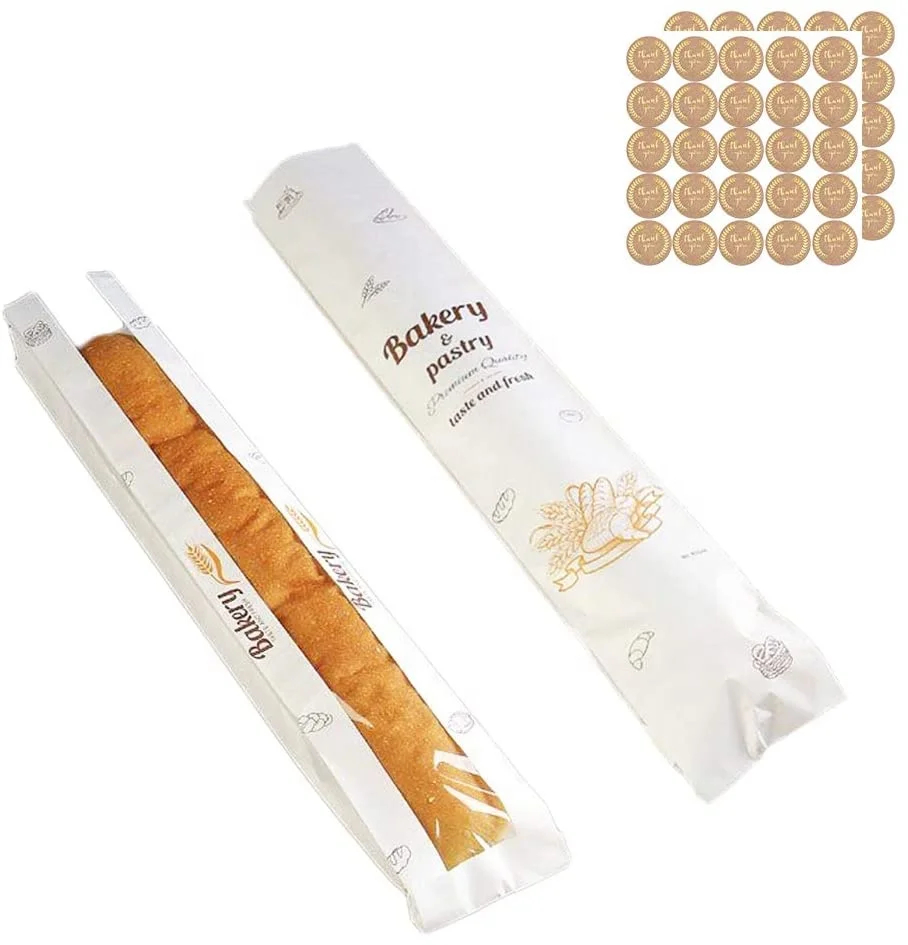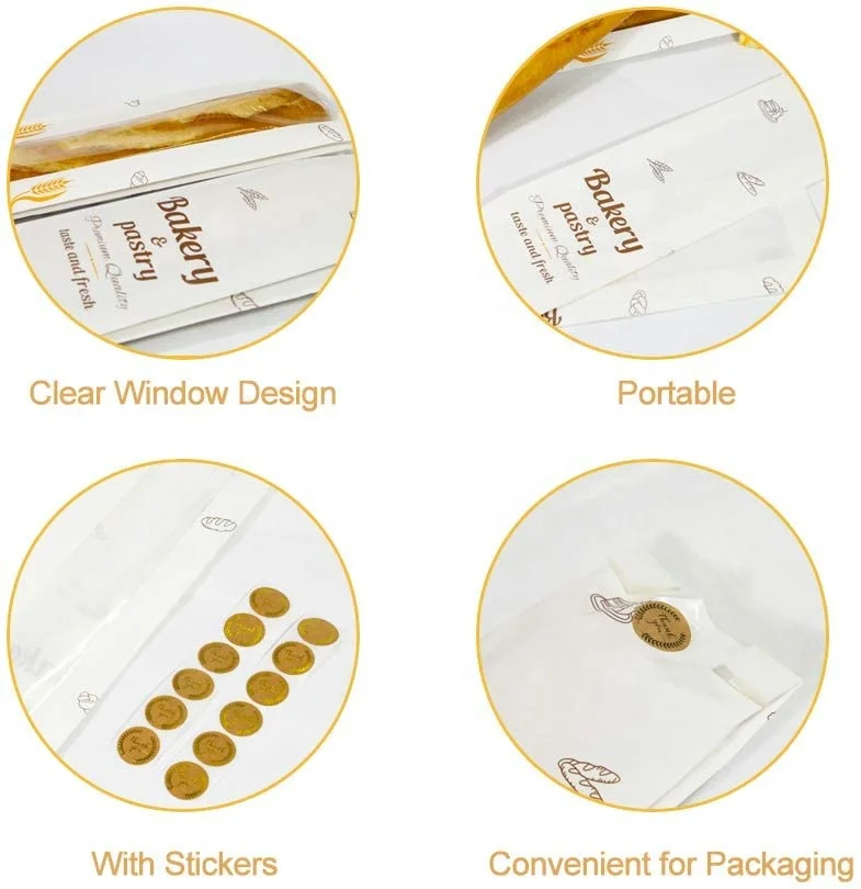 Wholesale Food Grade Paper Bakery Pastry Bag Custom Printed Grease Resistant Kraft Paper Loaf Bread Bags with Window