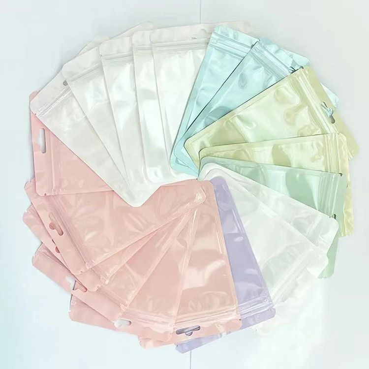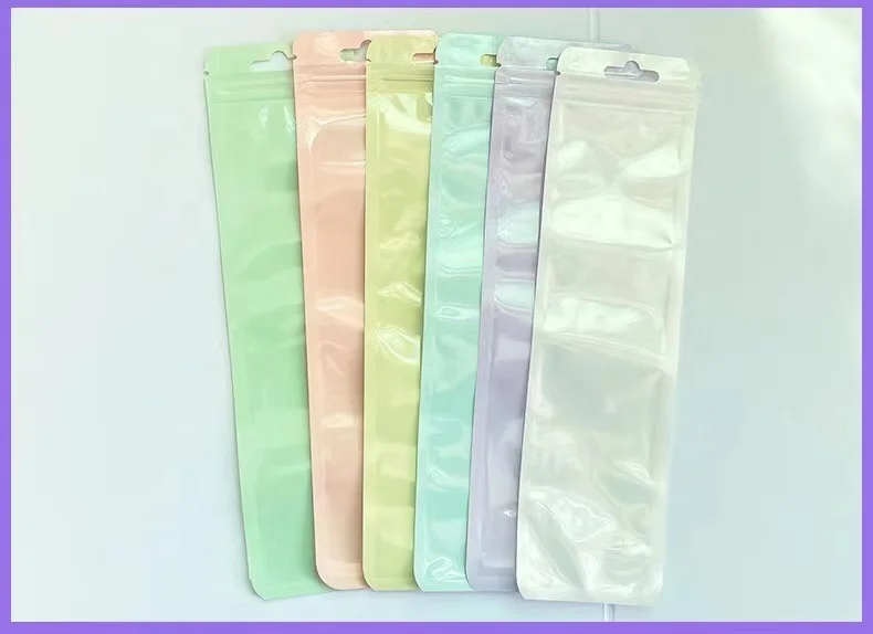 Wholesale Macarons Pink Green Purple White Resealable Transparent Window Plastic Small Ziplock Gift Bags