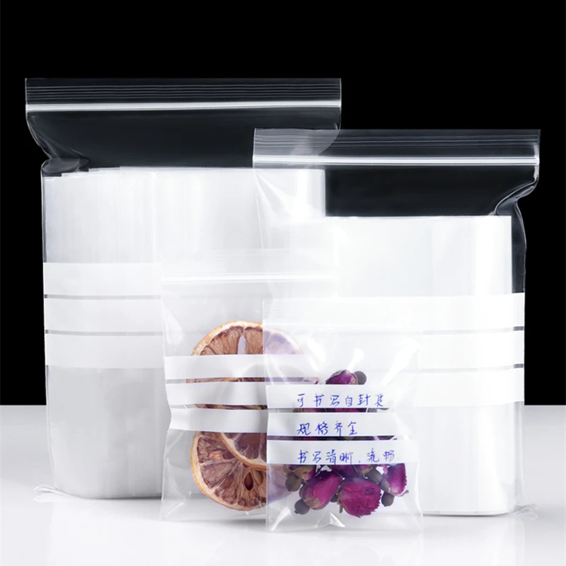 Wholesale Plastic Zip Lock Bag with Mark Space Moisture Proof Flexible Use Transparent Baggies Plastic Writable Ziplock Bags